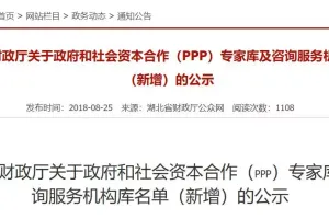 近日,湖北省财政厅公众网向社会公布了拟新增的“湖北省PPP咨询服务机构公示名单”,共计69家机构入选,其中综合类49家,南京睿立方投资咨询有限公司成功入选。详细名单如下:湖北省PPP咨询服务机构公示名单